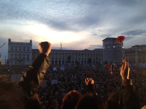 Portugal vivió ayer una jornada de movilizaciones masivas. Cuarenta ciudades en todo el país se vieron tomadas por una riada humana, convocadas por el movimiento "Que se lixe a Troika" (algo así como "Que le den a la troika"). Lisboa, Coimbra, Oporto, Faro, Algarve, Setúbal, etc... se unieron al ritmo de Grândola, vila morena, canción símbolo de la revolución portuguesa que acabó con la dictadura salazarista, que dominaba el país desde 1926, el 25 de abril de 1974.